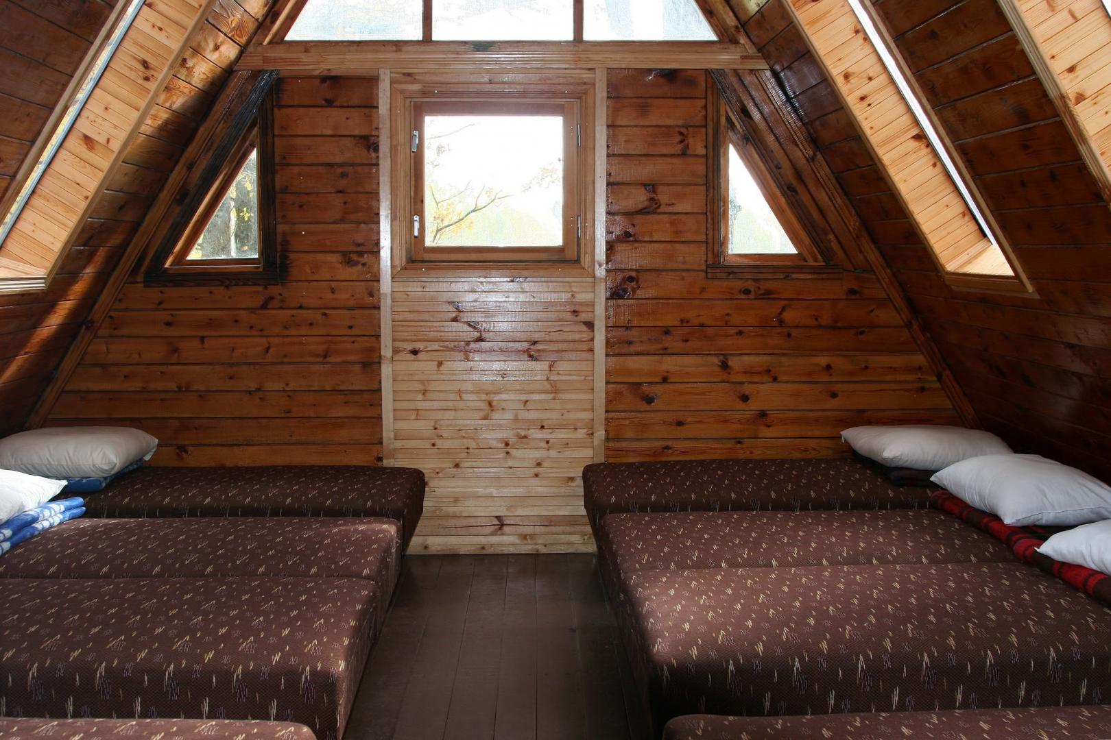 В гостевом доме могут разместиться до 25 человек. 5 номеров, каждый из которых оформлен по-разному: зеленый (сон на овсяной соломе и льняных листьях), и переговорных комнат для отдыха, фиолетовый – для размышления, медитации, желто – оранжевое -настроение зарядки, красный – любовь.
