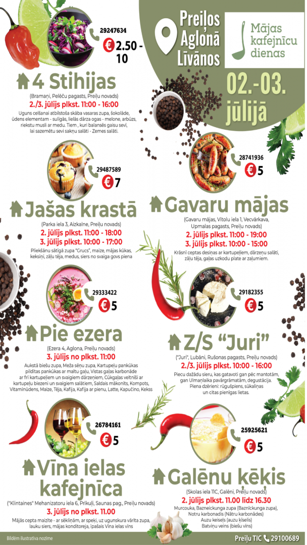 Tāpat 19. augustā Preiļu parka pludmalē no 16.00 līdz 19.00 un no 21.00 līdz pusnaktij varēs vizināties ar plostu, bet no 22.00 līdz 01.00 notiks pirts mucu un kubulu saiets “Voi plyks, voi troks” (rezervācija kompānijai (10 pers.), zvanot uz tālruņa numuru 29235318).